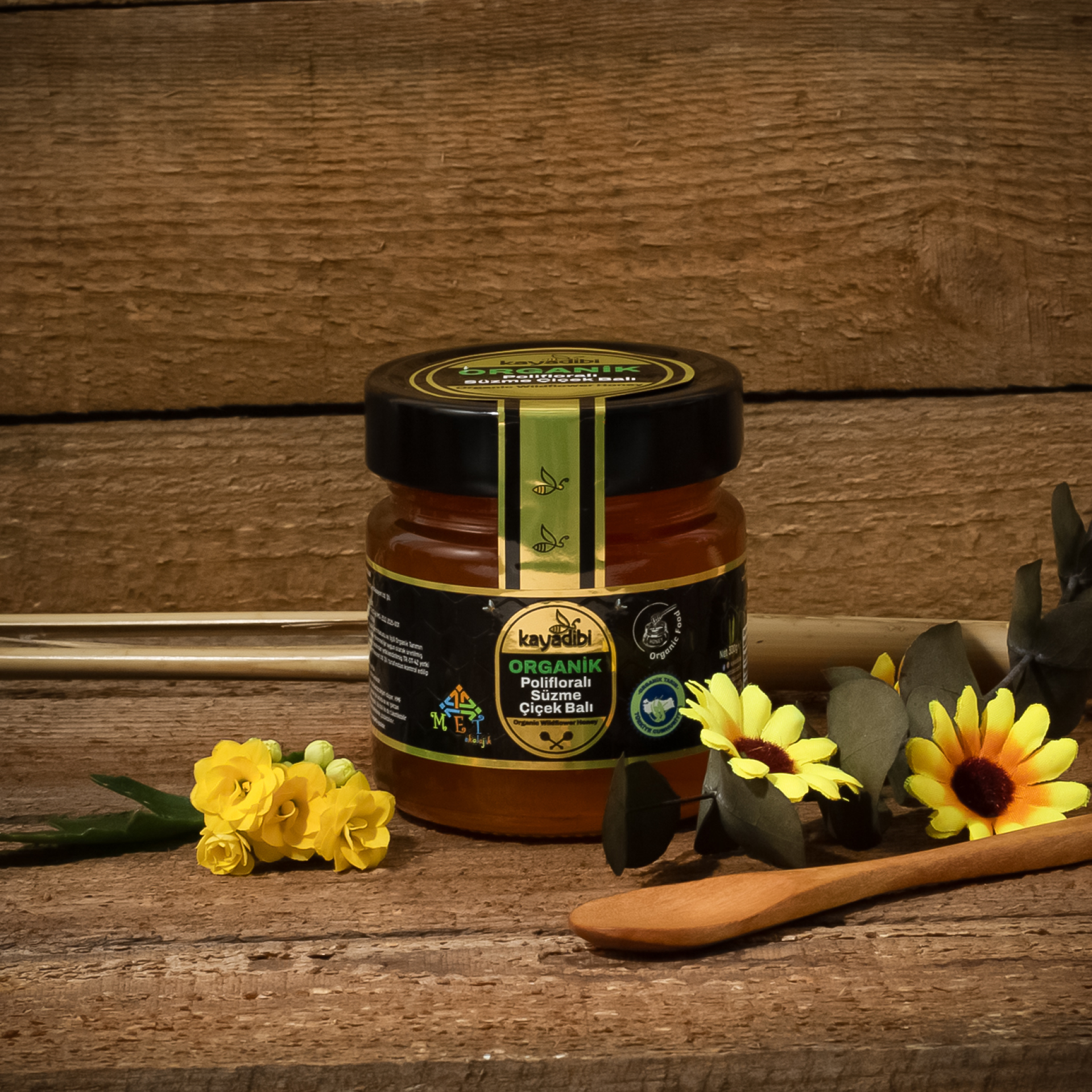 Kayadibi Bal markasının gezginci arıcıları, mevsimine göre Doğu Anadolu Bölgesi’nin 1700 rakımlı yaylalarına giderek konaklar. Burada hayatın döngüsüne yeniden katılan arılar, her çiçekten bal alırlar ve ortaya bu eşsiz tat çıkar. Sofralarınıza gelen lezzetin sırrı farklı bölgelerdeki farklı çiçeklerden gelen farklı tatların birleşiminden kaynaklanmaktadır. Kayadibi Organik Polifloralı Süzme Çiçek Balı’ın içeriğindeki çiçekler ağırlıklı olarak şu şekildedir: Geven, kekik, papatyagiller, tarak otugiller, ıhlamurgiller ve baklagiller.